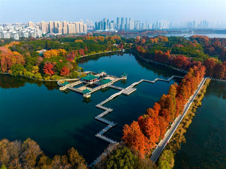 武汉东湖风景区是解放后才开发的自然山水风景区,其景区环境以“山绕水、水映山”的格局而著称。东湖除了湖光山色的美丽自然景观外,还有四季的花鸟虫鱼让游客体验大自然的美丽与神奇。东湖的春日樱花园内千株樱花如云似雪,与湖面相映成趣,美不胜收。东湖的夏日听涛景区、磨山中国荷花研究中心内的荷花满世界的怒放,清香四溢。秋日: 枫多山、磨山、落雁岛上层林尽染,红黄交织如大地秋日油画。 冬日:湖面偶有薄雾缭绕,残荷与芦苇勾勒出萧疏意境。湖畔的磨山半岛中国梅花研究中心的数千株梅花盛开, 构成一幅幅华中地区最有诗意的冬春赏梅图。