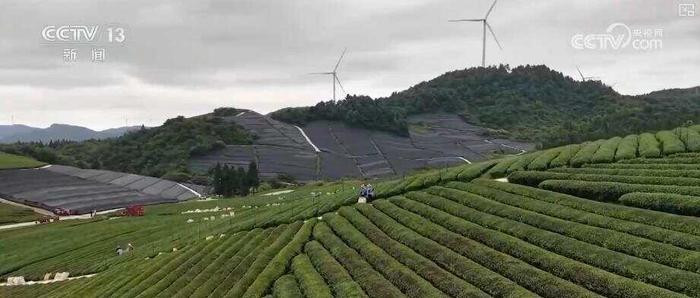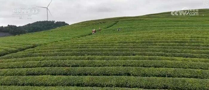 这里是贵州省黔南州瓮安县的一片1000多亩的茶园,海拔大约是1400多米。从空中俯瞰,一座座茶山就如同绿色的波涛连绵起伏。趁着这两天降雨停止,茶场的工人们正操作采茶机,加紧采收2025年的第三季茶叶,而这些茶叶就是制作抹茶的原材料。遮阴处理作用大茶叶鲜绿口味佳