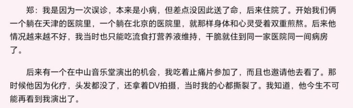 在长时间的病痛折磨下,郑绪岚的身体也非常虚弱,可以说,爱人的陪伴是她活下去的动力之一。