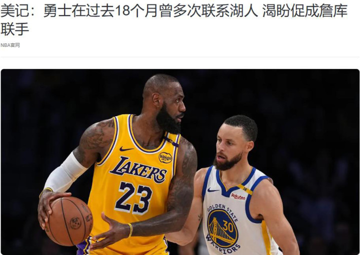 据NBA中国官网报道:勇士在过去18个月多次联系湖人,渴望促成詹姆斯、库里联手。